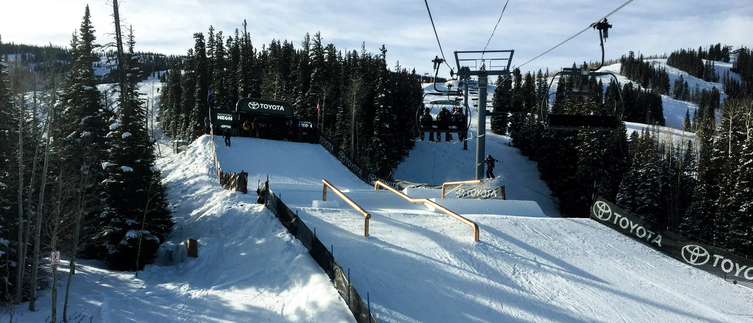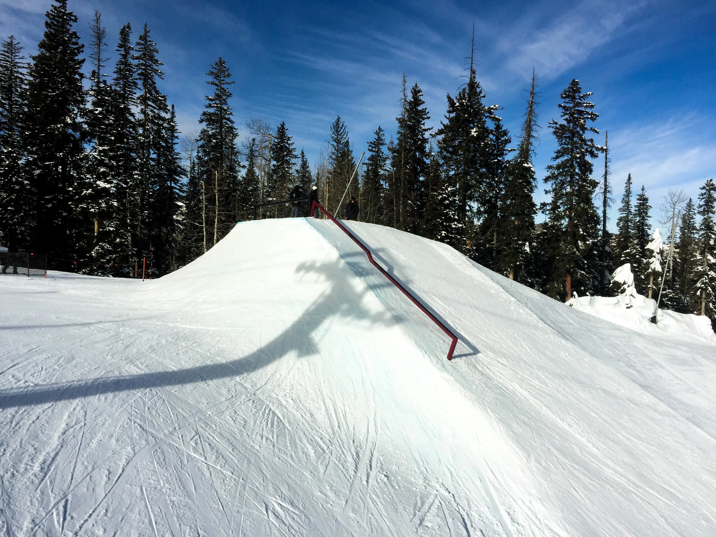 Most of the time for my first day of trainings I usually spend the majority of my day just hitting the jumps and doing straight airs to figure out my speed. As soon as I have that factor dialed, I start to do tricks. For this course we have an interesting selection of features. Starting off with three different rail features which include; A shooter rail, down-flat-down, and a gap to down rail.